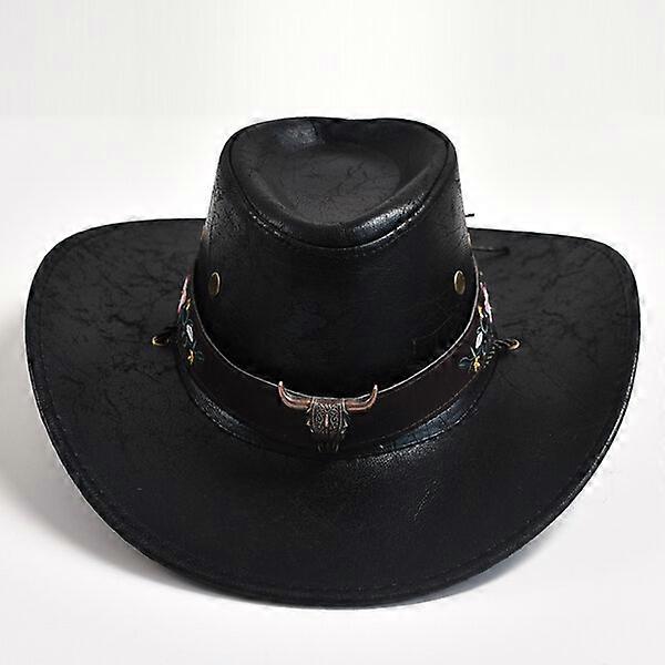 Western Cowboy Hat, Wide Brim Design, Bull Head Decoration, Unisex Panama Hat
