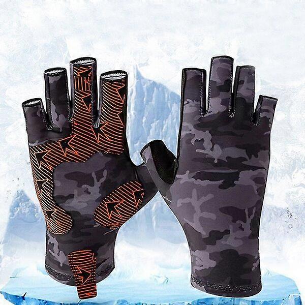 Half-finger Fishing Gloves with Non-slip Silicone Palm CO02 Black Camouflage for Fishing and Boating