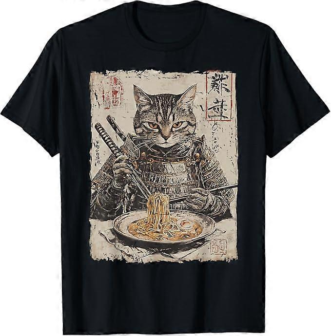 Samurai Cat Loves Ramen Funny Anime Artwork Samurai T-Shirt