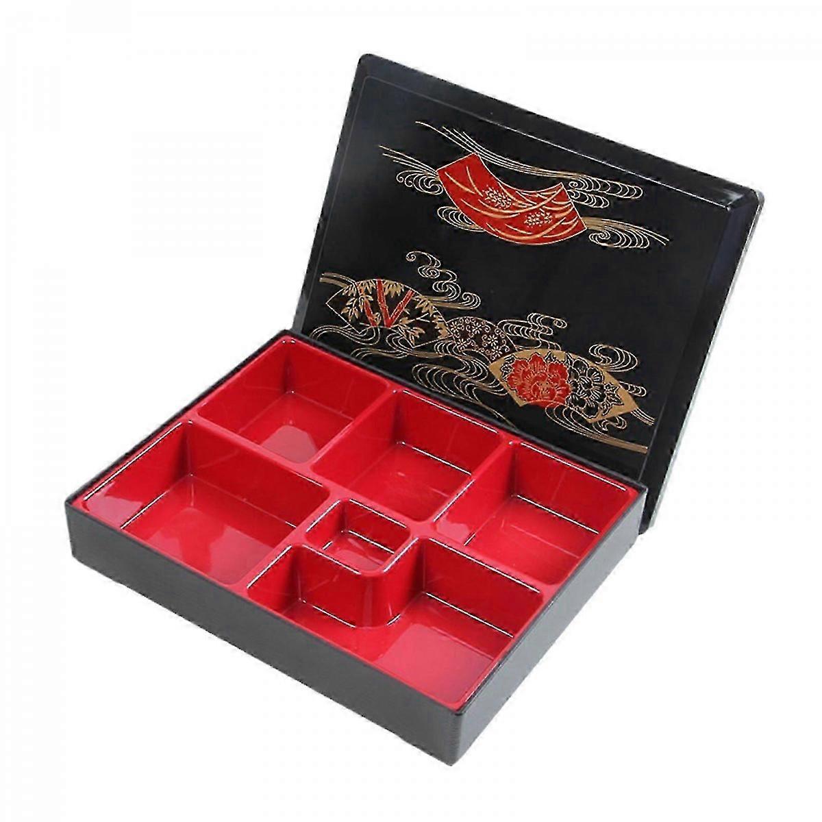 Japanese Bento Box, 6-Compartment Sushi Tray with Lid