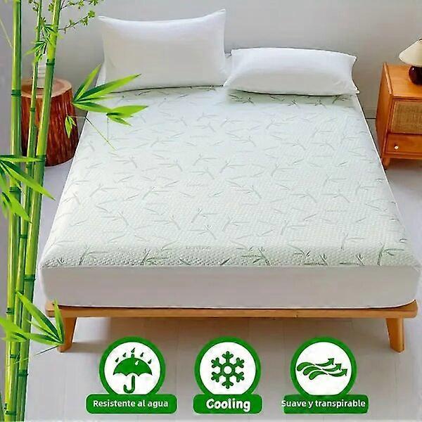 Bamboo Fiber Fitted Sheet Waterproof and Breathable 180x200x30cm Green 6-14 Inches Mattress Protector