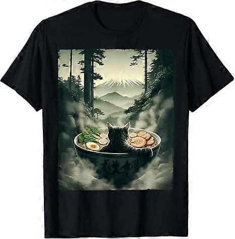 Cat Ramen Mount Fuji Zen Aesthetic Funny Graphic T-Shirt