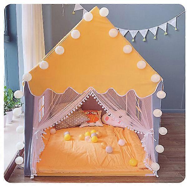 1. Item Type: Kids Play Tent Toy 2. Product Material: Fabric and Plastic 3. Package List: 1 x Kids Play Tent Toy 4. Large Window: The kids play tent toy has a large side vented window, which is ventilated. 5. Lace Curtains: Equipped with lace curtains and extended mesh, the kids play tent toy has a good anti-mosquito effect. 6. Excellent Beautiful: Using sophisticated production technology and exquisite workmanship, this kids tent is exquisite and beautiful. 7. Gift Option: It is a gift for your child to create a kingdom in any corner of your home and realize the child's dream of a house and villa. 8. Material Features: Made of material with soft texture and high-density structure bottom, so that your child will not be injured when playing.