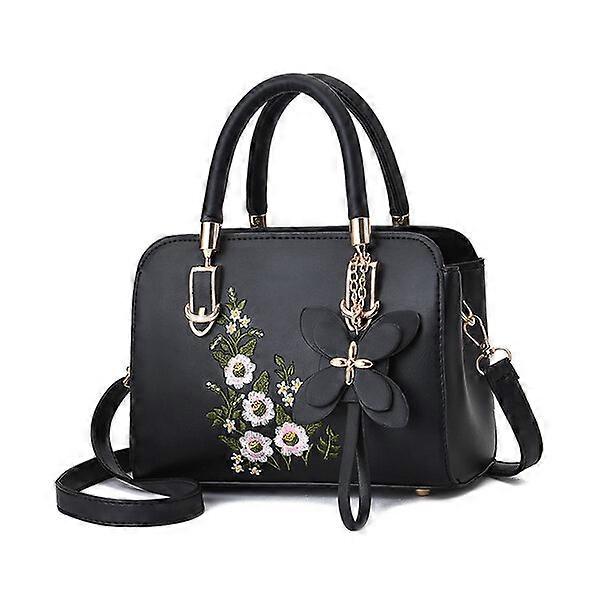 Black shoulder bag with multiple compartments and detachable shoulder strap for daily casual use