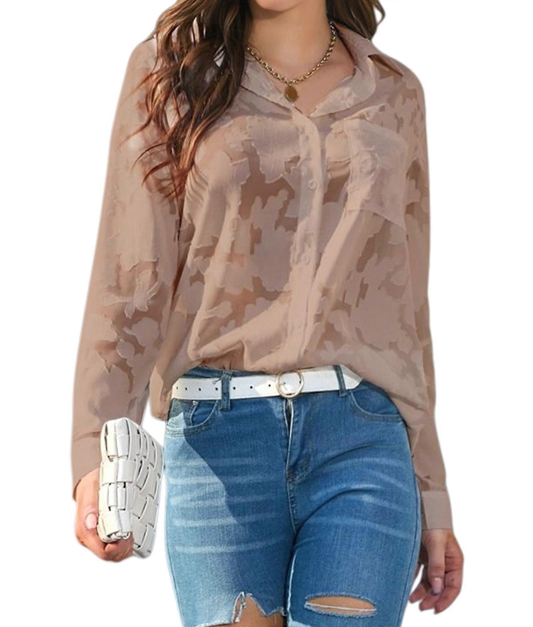 Womens Loose Fit Casual Chiffon Blouse Top Flowy Summer Shirt Elegant Office Wear Rubber Red L