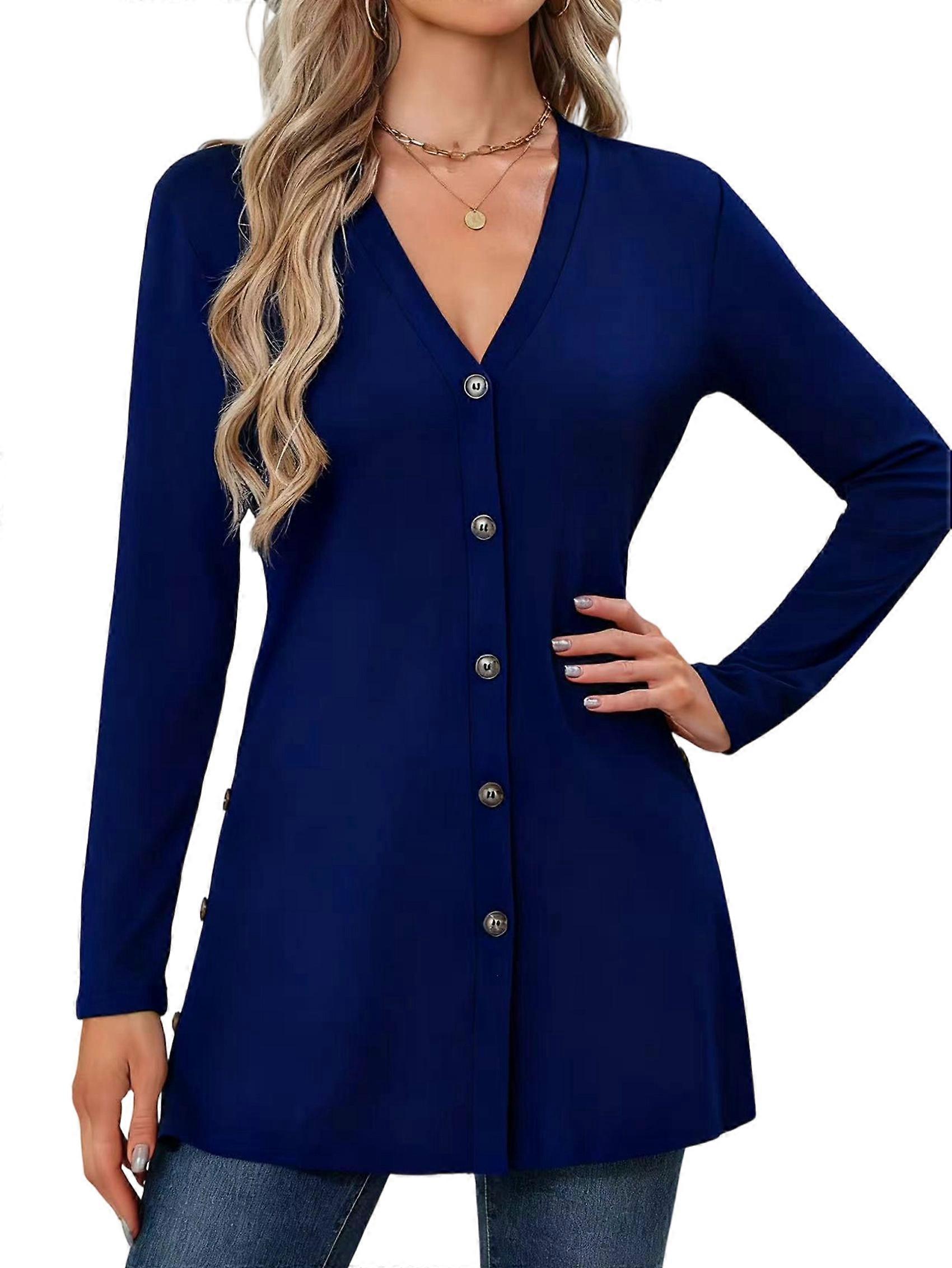 Womens Long Sleeve Button Down Shirts - Dressy Casual Fall Tops, Trendy Tunic Tops for All Occasions Deep Blue L