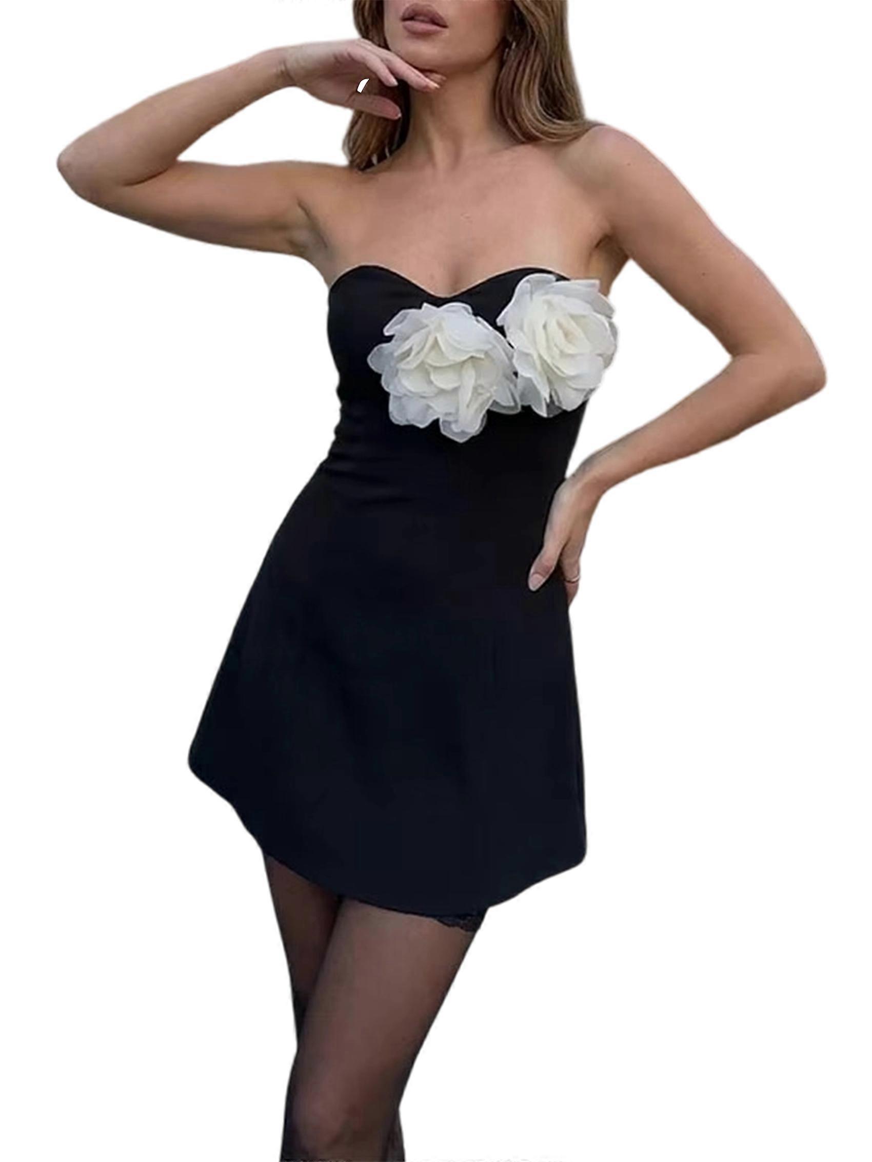 Women'S Mini Dress Strapless Sweetheart Neck Off Shoulder Sleeveless Tube Party Dresses Black S