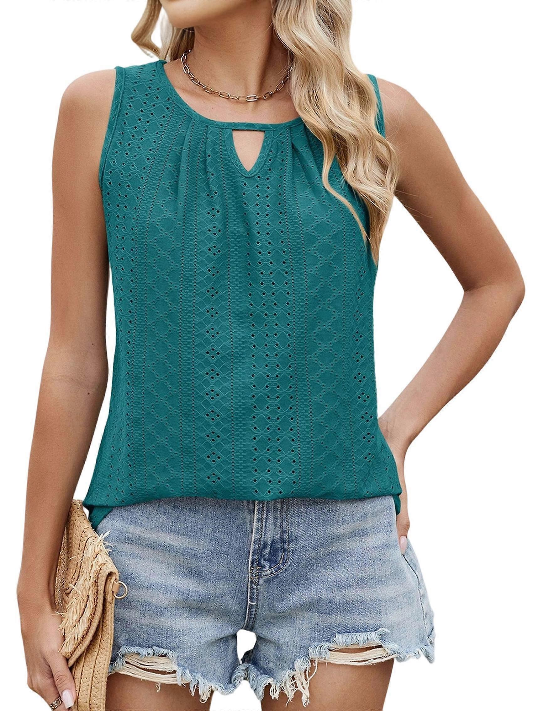 Womens Tank Tops Casual Sleeveless Tops Keyhole Neck Summer Tops Flowy Clothes Outfits Peacock Blue L