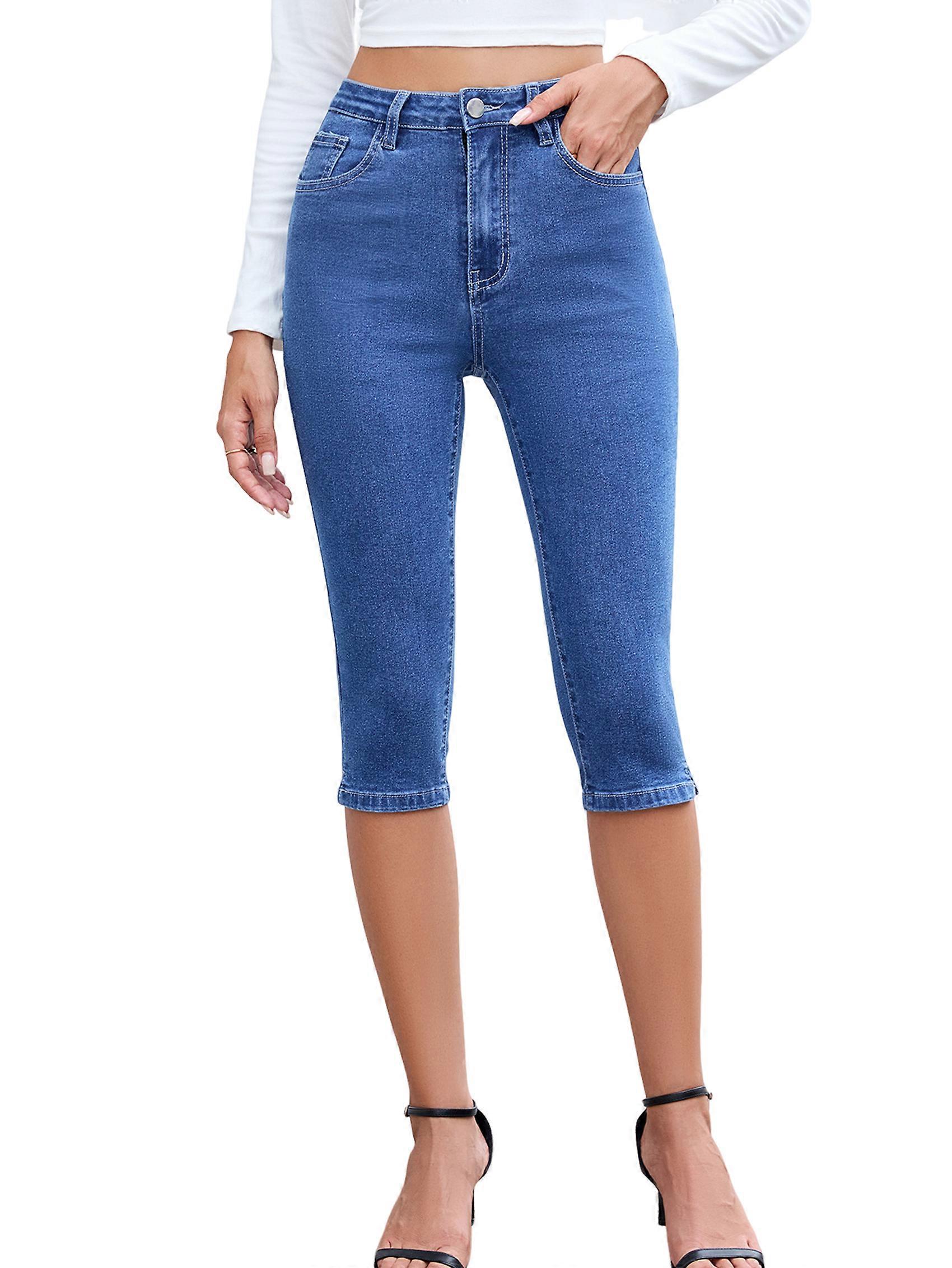 Women Jeans Trendy High Waisted Slim Fit Stretch Denim Jeans Deep Blue XL