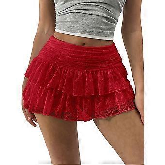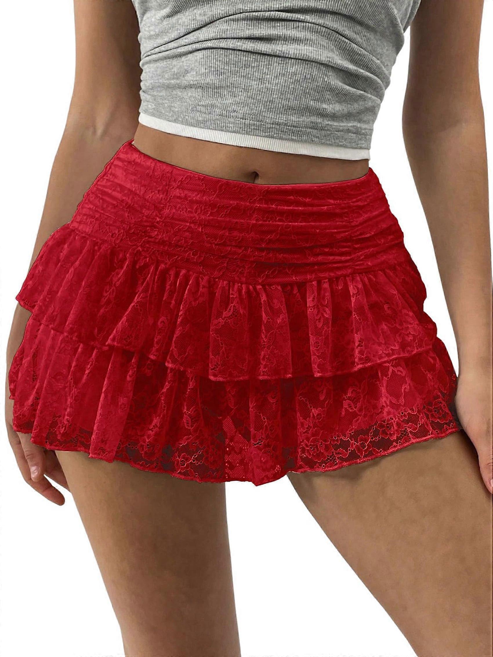 Women'S Y2K Lace Mini Skirt with Shorts A Line Hight Waisted Ruffle Skirt Skort Red S
