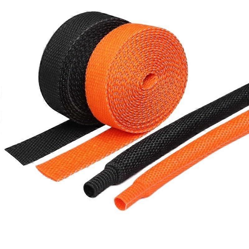 PET Heat Shrink Braided Cable Sleeve 35mm Orange Flame Retardant Wire Protection for Automotive 10m