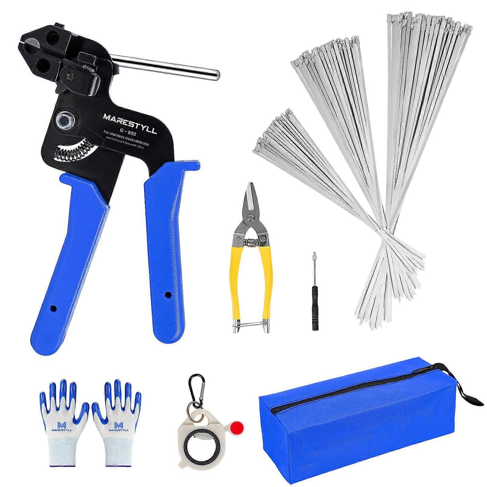 Stainless Steel Cable Tie Gun Kit with 150pcs Ties, Fast Tensioning and Cutting Tool for Exhaust Wrap and Fences