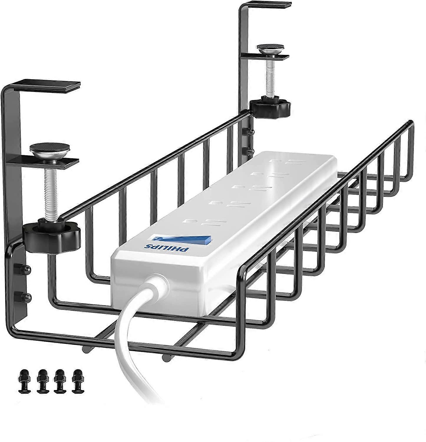 Under Desk Cable Management Tray Keep cables organized and off the floor without drilling or permanent hardware. This clampon cable tray hangs directly from desk frames and can be repositioned as needed, so you can avoid damaging your desk surface. Key benefits No drilling required: Hangs to desk frames and secures with a C clamp, avoiding screw installation and surface damage. Saves workspace: Clears clutter and frees floor and desktop space by storing power strips, adapters, and cable bundles under the desk. Durable construction: Fully welded metal tray with a powder coated finish that resists rust and dust buildup for long term use. Reliable capacity: Each tray holds up to 10 lbs and measures 15.7 L x 4.7 W x 5.9 H inches (40 x 12 x 15 cm), providing ample room for cords and power accessories. Features and compatibility Install options: Designed to hang from desk frames or be mounted using a C clamp, compatible with wood, glass, and other desk materials where a clamp can be applied. Solid build: Sturdy metal construction provides stable support for power strips and cable bundles. Low maintenance: Powder coated surface reduces dust accumulation and simplifies cleaning. Practical use scenarios Home office: Route power cords and charger cables under the desk to create a neater, more organized workstation. Shared workspaces and conference rooms: Keep power strips and AV cables hidden and accessible without altering the furniture. Gaming or media setups: Store adapters and surge protectors off the floor to protect equipment and reduce trip hazards. What you get One fully welded, powder coated metal cable tray sized 15.7 x 4.7 x 5.9 inches (40 x 12 x 15 cm) with a 10 lb capacity per tray Mounting method that avoids drilling and works with C clamp attachment on a variety of desk materials This under desk cable management tray is a practical solution for organizing cords and power accessories while protecting your desk from holes and permanent fasteners.