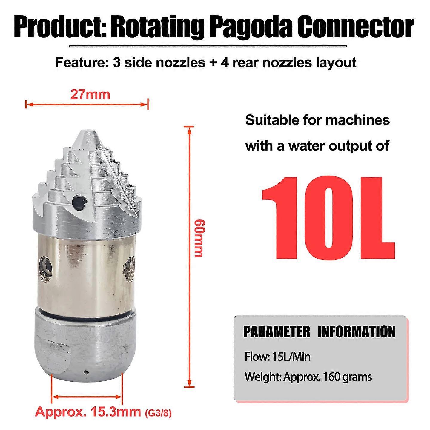 3/8 Inch Interface Stainless Steel High Pressure Rotary Cleaning Nozzle Sewer Drain Tube Cleaning Nozzle Hose Nozzle Flow 10~30L