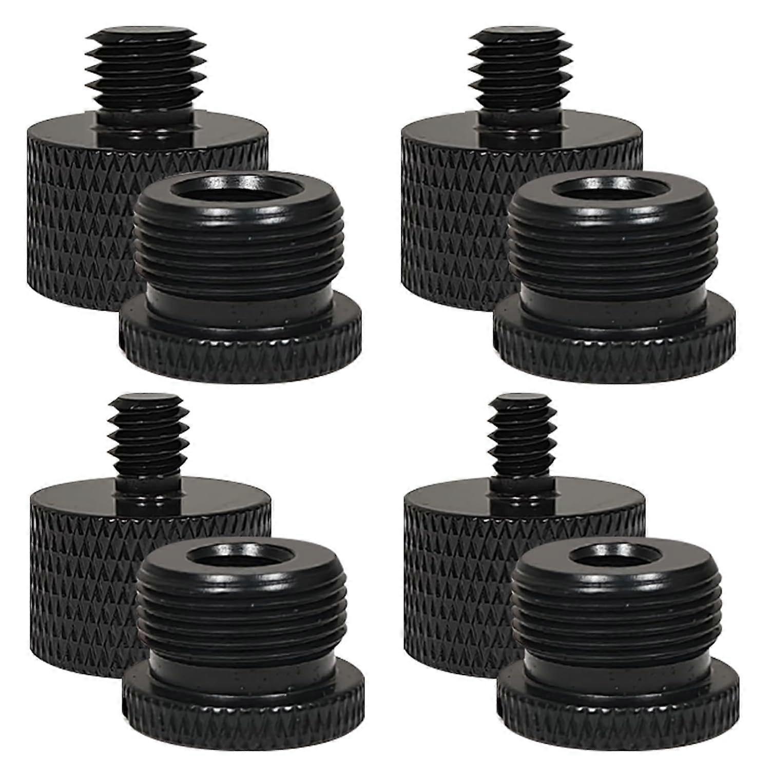 High-quality materials: The microphone stand adapter is made of sturdy aluminum with a sleek matte black finish, combining a stylish look with long-lasting performance. Rust and wear resistant, it's perfect for studio use or mobile setups. Secure and stable: This microphone stand adapter features a burr-free textured surface for easy handling and a secure grip. Precision threads ensure even pressure and a firm, non-slip fit, holding your device securely. Easy to set up: The microphone stand adapter has a slot on the bottom for quick connection and installs easily without disassembly. Its compact and lightweight design fits perfectly into any setup and is ideal for studio and mobile use. All-in-one adapter kit: includes 8 microphone adapters: 2 x 3/8" female to 5/8" male, 2 x 1/4" female to 5/8" male, 2 x 5/8" to 1/4" male, and 2 x 5/8" female to 3/8" male, to meet the diverse requirements of recording equipment.