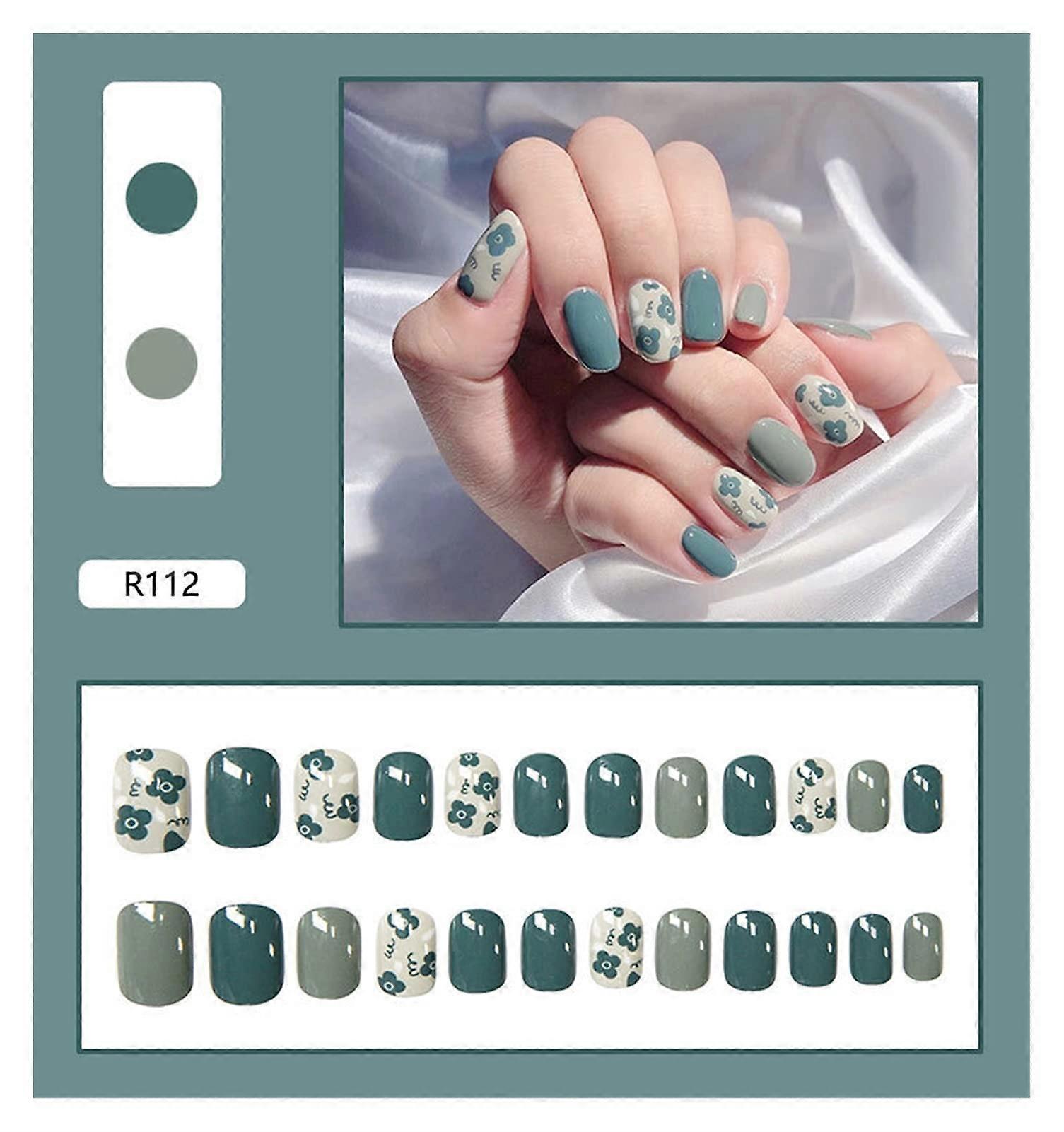 Fake Nails Set with Fingertip Protectors, Enhanced Grip, Reusable Press On Short Design R112
