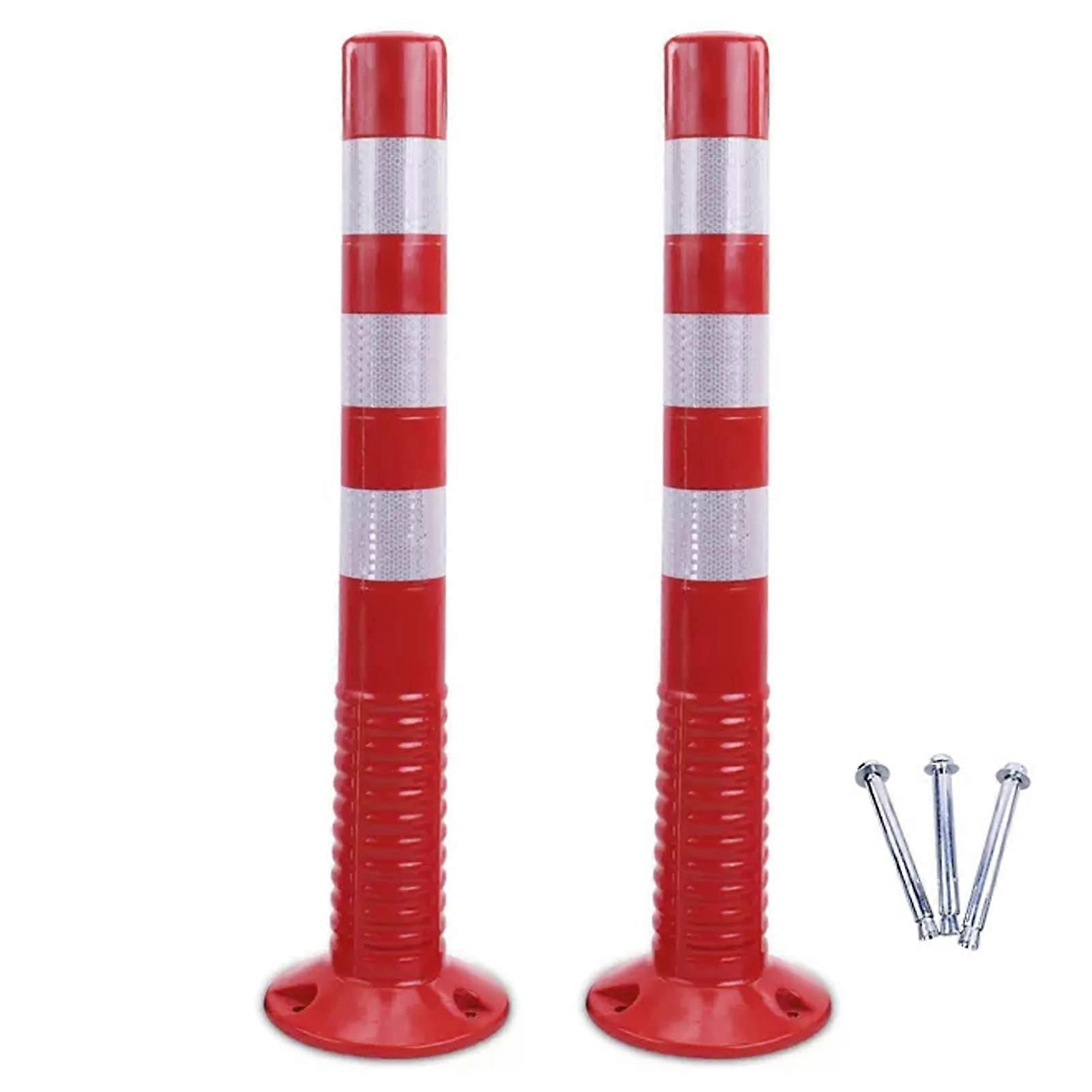 Heavy Duty Reflective Traffic Delineator Post, Red and White Flexible Parking Bollard with Expansion Bolts (4 Pack)
