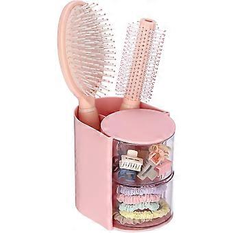 Rotatable Hair Accessories Organizer with Hair Brush Holder 180 Spinning Makeup Brush & Jewelry Storage Box for Hair Clips, Earrings, Necklaces, Brac