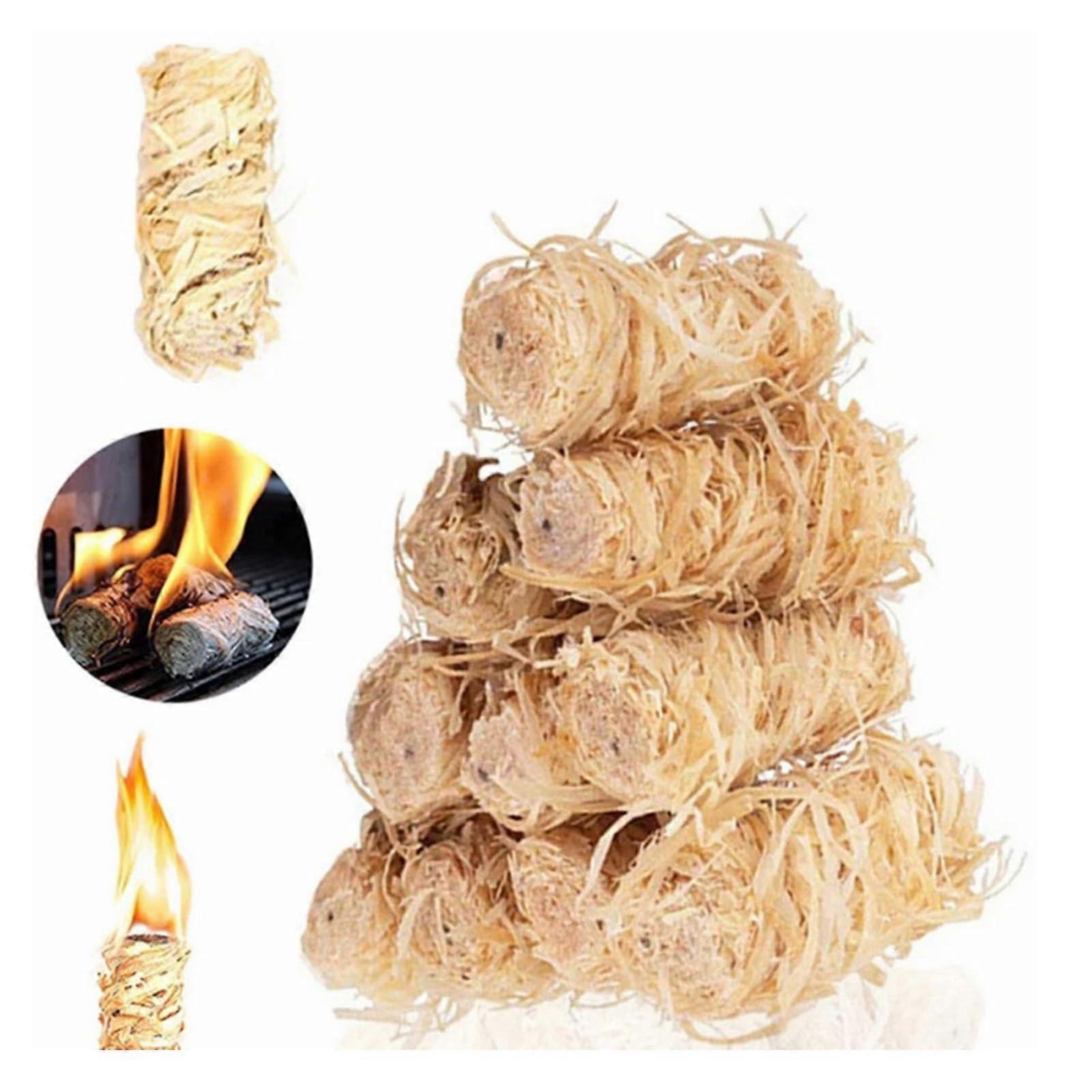 Natural Eco Fire Starters 50pcs Wood Wool BBQ Fire Lighters for Charcoal Logs Fireplace Camping