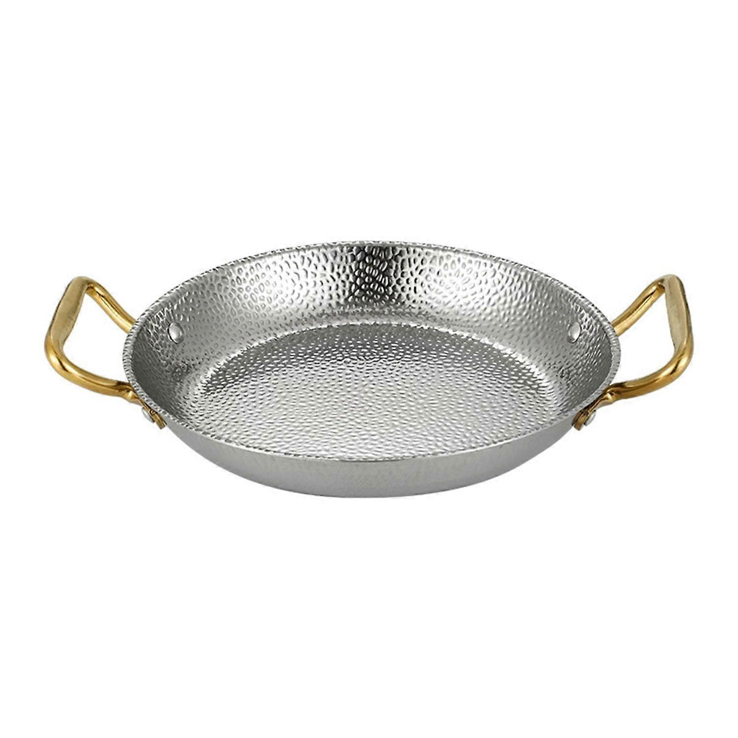 Paella Pan Stainless Steel Nonstick Double Ear Skillet for Home and Restaurant 20cm Silver