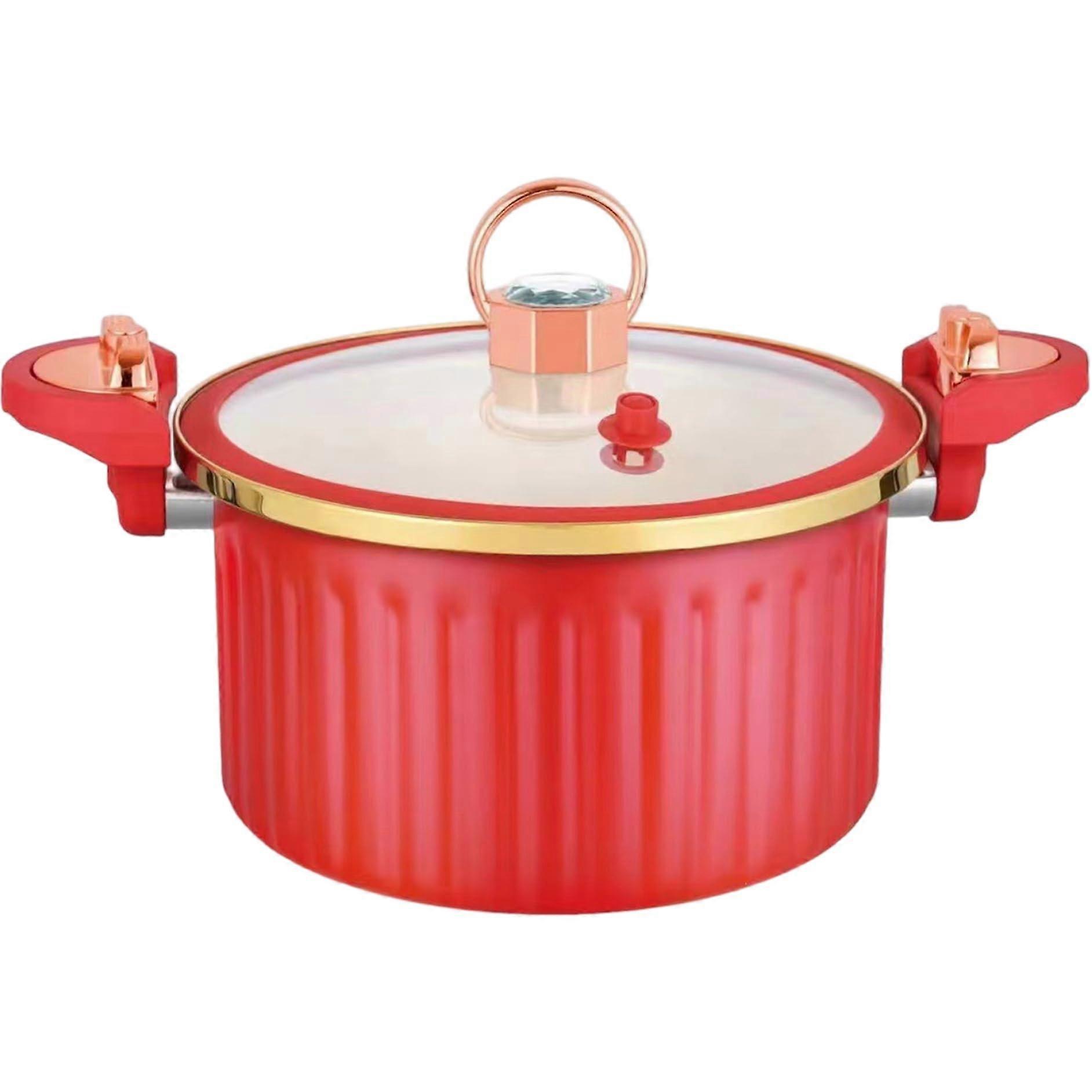 Nonstick interior for easy cleanup: The inside surface is coated with a nonstick layer so food won't cling, reducing scrubbing and making postmeal cleaning quick and simple. Ideal for stews, soups, rice dishes and onepot meals. Spacesaving compact size: Measures 11 x 5.5 inches — designed for small households, dorm rooms, or busy kitchens where counter and storage space are limited. Small footprint, full cooking capability. Durable enamelcoated iron construction: Made from quality iron with a red enamel coating that resists wear and provides longlasting performance. The enamel finish also helps prevent surface damage and maintains the pot's appearance. Even heating and good heat retention: Iron body distributes heat evenly across the base and sides and holds heat well, so food cooks consistently and stays warm longer after cooking. Versatile stovetop compatibility: Works on all common stovetops — gas, electric and induction — so you can use it in any kitchen setup without special adapters. Practical for everyday use: Designed to deliver reliable results for daily meals without taking up much space or requiring complicated care. Typical uses Quick weeknight stew or soup for two: Build a hearty meal from scratch, simmer evenly, and clean up in minutes. Rice and grain dishes in small kitchens: Make risotto, pilaf or steamed rice without a large pot; nonstick interior prevents sticking and clumping. Simple onepot meals in dorms or apartments: Prepare pasta, braises or mixed vegetables using a single compact cooker that fits tight cooking spaces. Key attributes at a glance Size: 11 x 5.5 inches (compact) Interior: Nonstick coated for easy cleaning Material: Iron with red enamel coating Performance: Even heat distribution and strong heat retention Compatibility: Gas, electric, induction stovetops This micro pressure cooker combines compact convenience, durable materials and easy maintenance to suit everyday cooking needs in small households and tight kitchens.