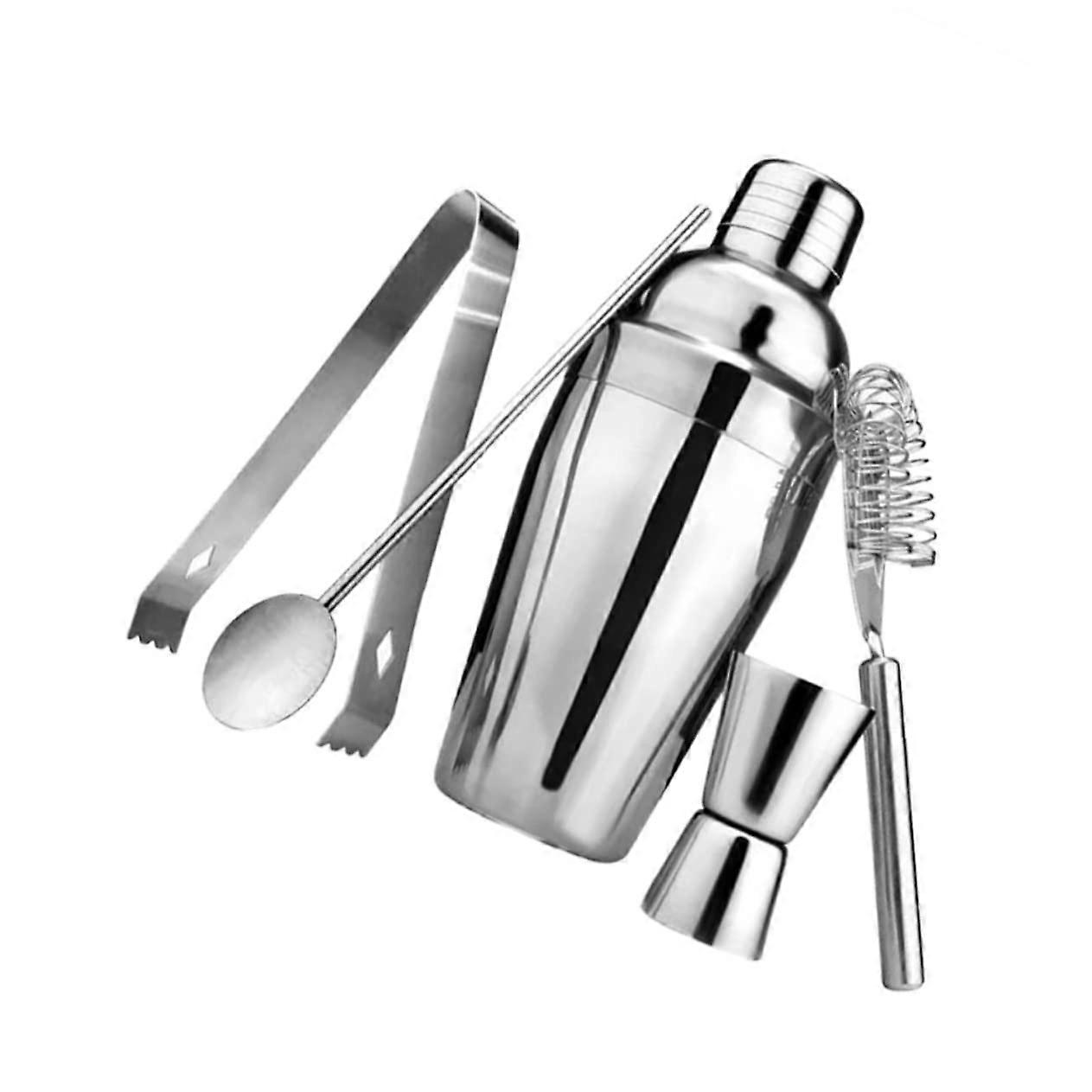 5pcs Stainless Steel Cocktail Shaker Set with Jigger and Strainer for Home Bar and Party Use