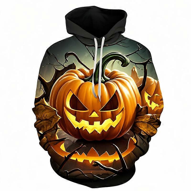 Halloween Pumpkin Graphic Hoodies For Men Women Funny 3D Print Horror Theme Long Sleeve Clothes Loose Hooded Pullover Unisex Top