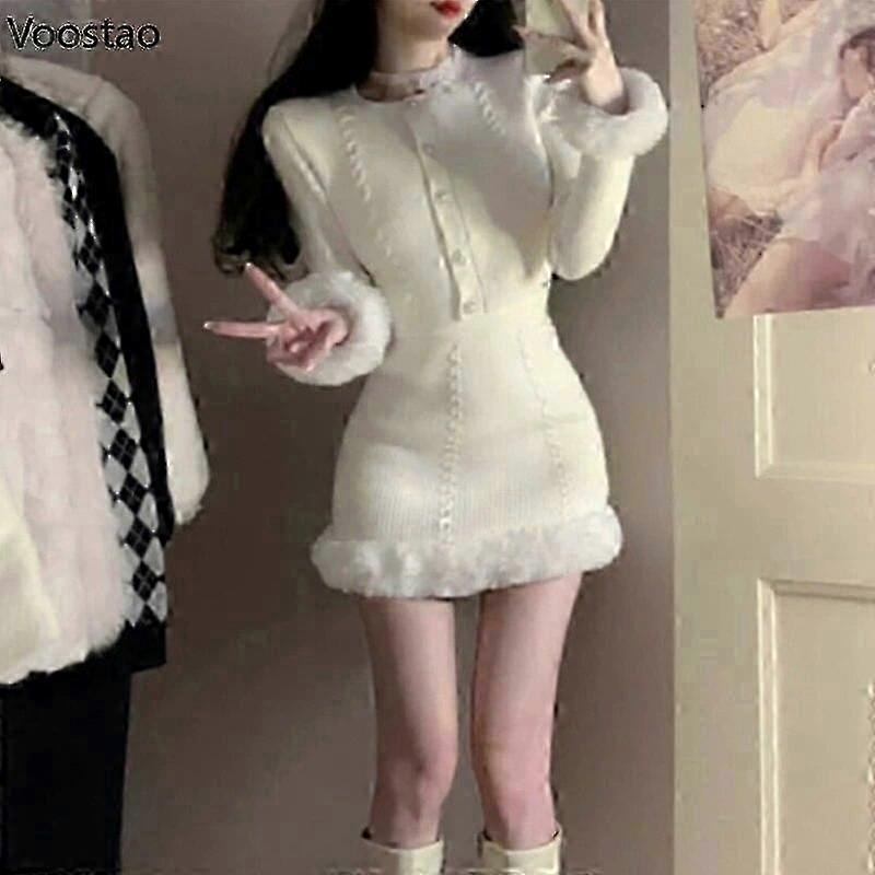 White Elegant Knitted Mini Skirt Set Women Sweet Plush Sweater Slim Skirt Suit Female Korean Fashion 2 Piece Sets Spring Autumn geschenke fur fr