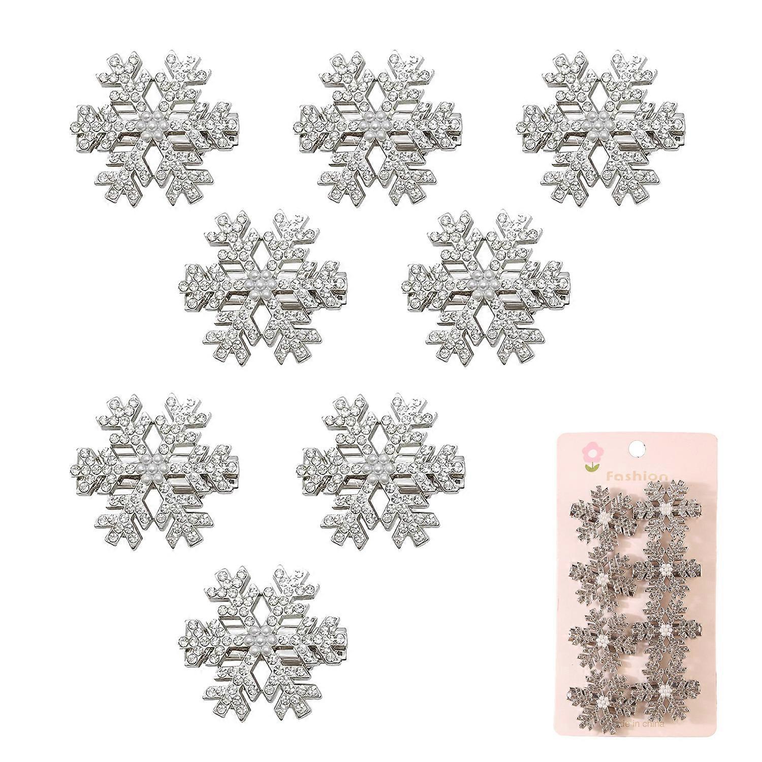 5Pcs/Set Flash Premium Sense Diamond Christmas Snowflake Hairpin Full Diamond Metal Bang Hairpin Hair Accessories Duck Bill Clip