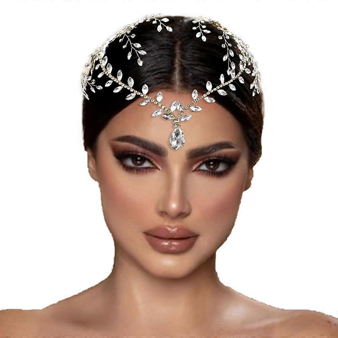 Gold Rhinestone Bridal Headband with Secure Bobby Pin Rings, Elegant Wedding Hairpiece for Bride