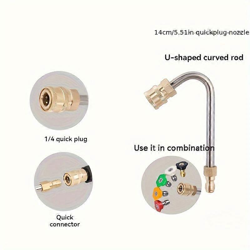High Pressure Car Wash Water Gun Elbow, Stainless Steel U-Bend Rod with Quick Connect 1/4" Right Angle Extension