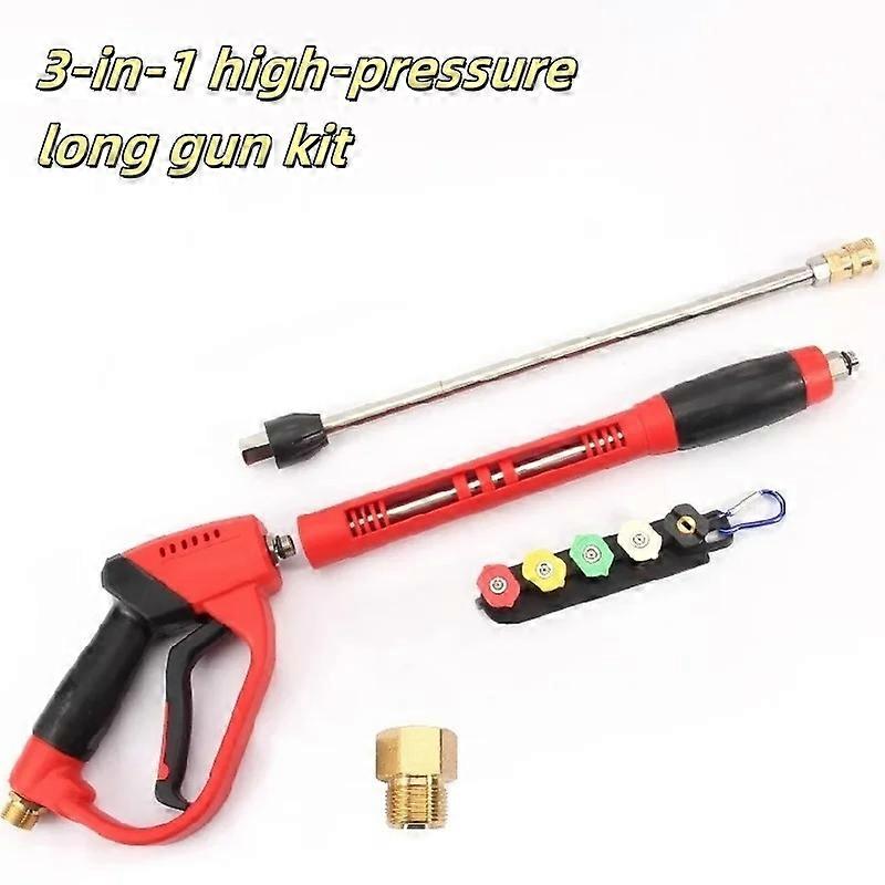 3-in-1 High Pressure Water Gun Kit, 3-Section Detachable, 5 Nozzles with Base, Fits M22-14/15 Thread, 1/4" Quick Connect