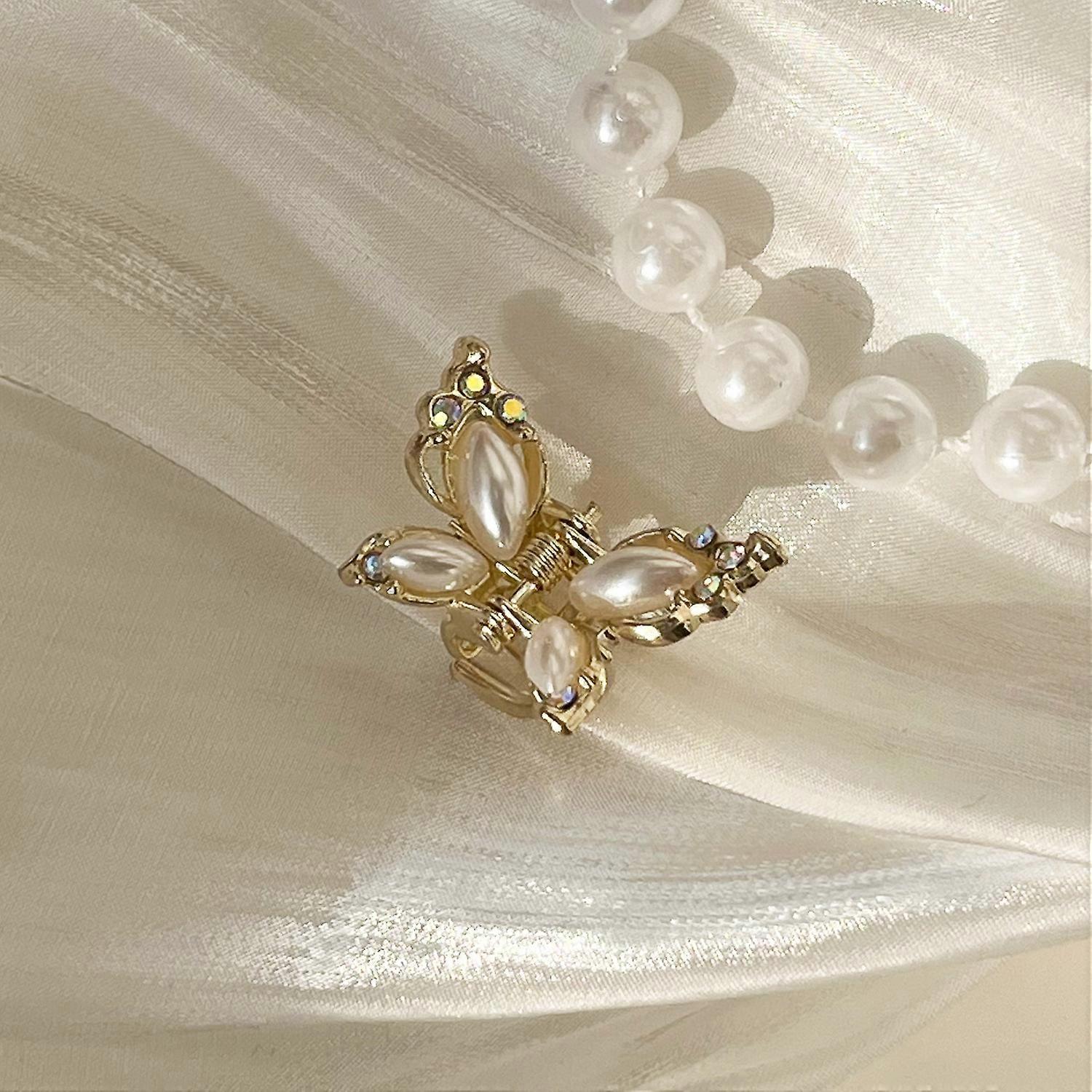 Butterfly Hairpin with White Pearl for Women Girls Mini Side Bangs Grab Clip Romantic Butterfly Hairpin Y2K Hair Jewelry