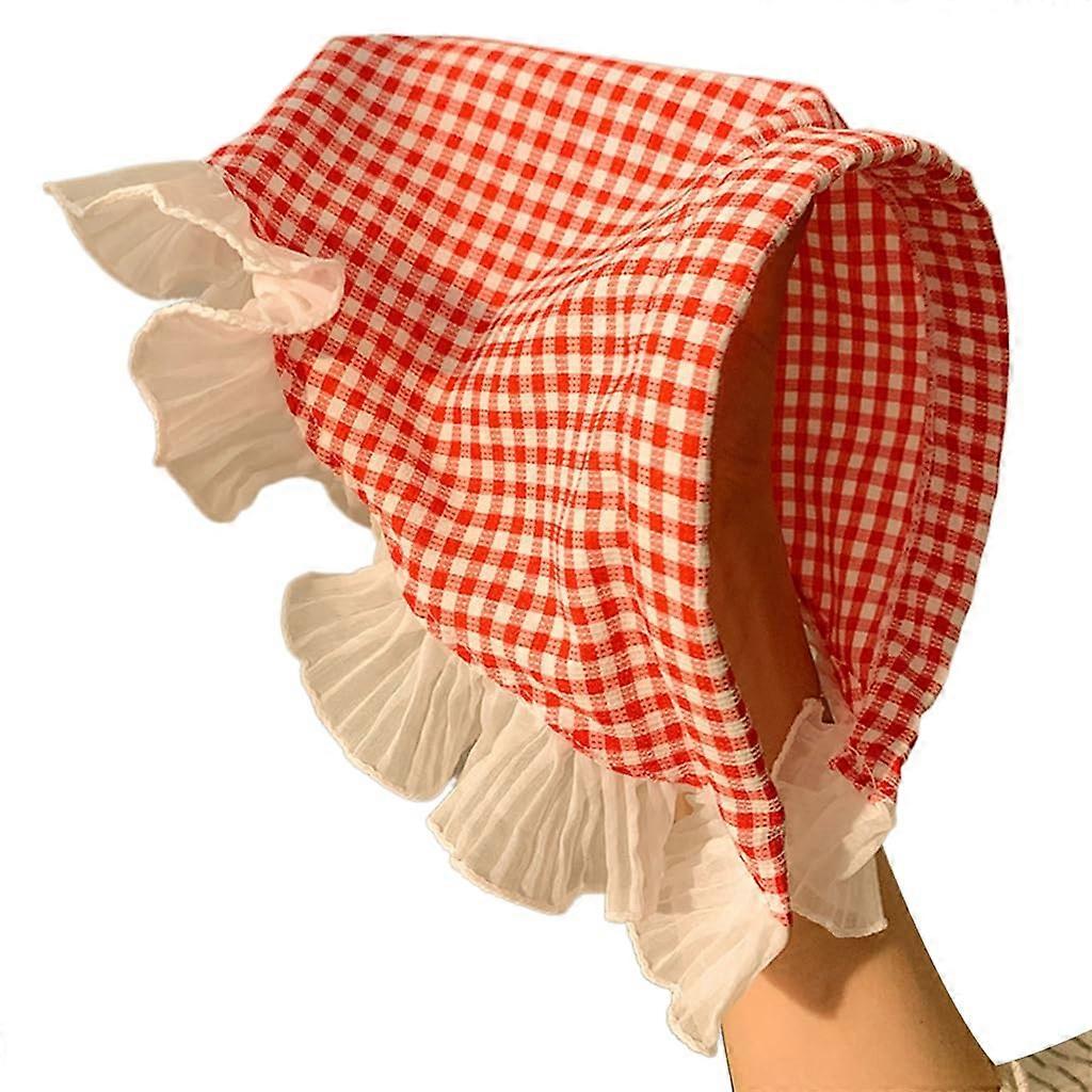 Headbands for Women Stylish French Style Checkered Hairband Soft Fabric Triangle Hair Kerchief Red