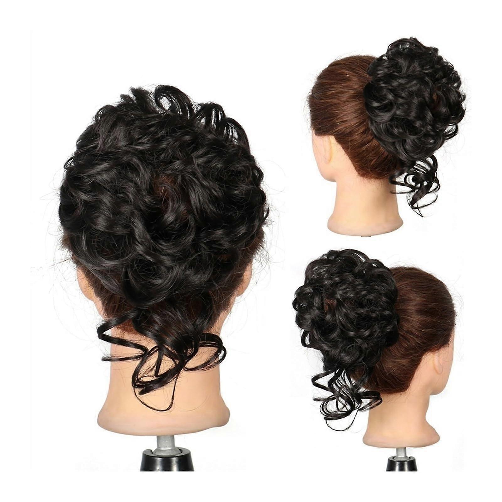 Messy Bun Hairpiece for Women, Synthetic Wavy Hair Bun Extension with Elastic Band, Color Q40 1B