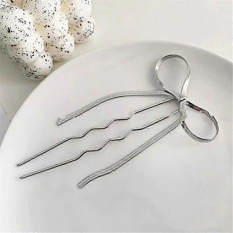 Metal Bow U Shape Hair Pins For Women Girls Headwear Silver Gold Color Hairwear Simple Fashion Hair Sticks Gift Hair Accessories