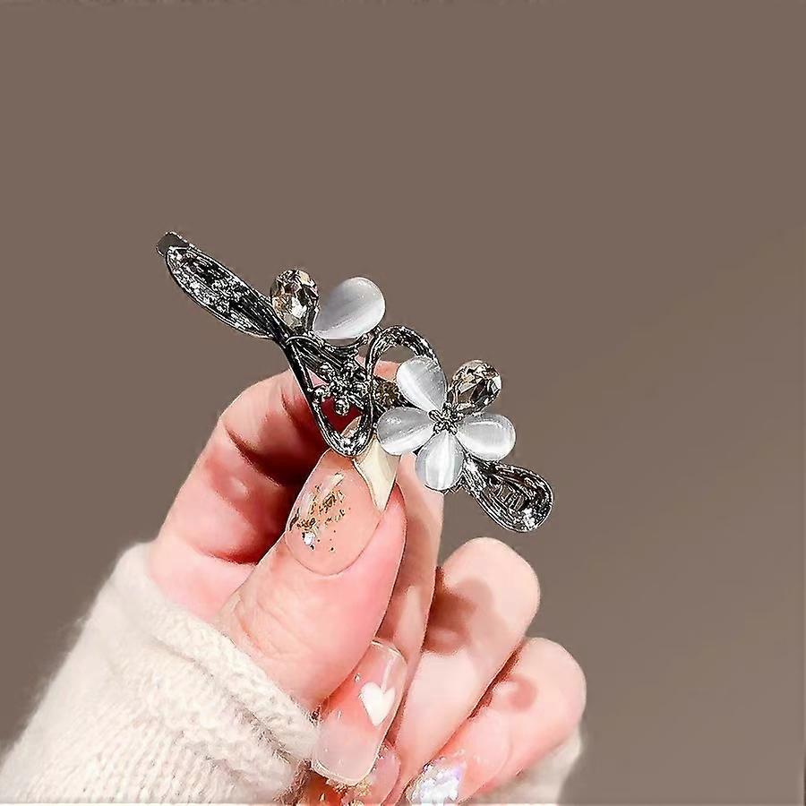 Black Crystal Glazed Flower Hairpin for Women Exquisite Alloy Heart Side Clip Butterfly Hair Clip Duckbill Clip Hair Accessories