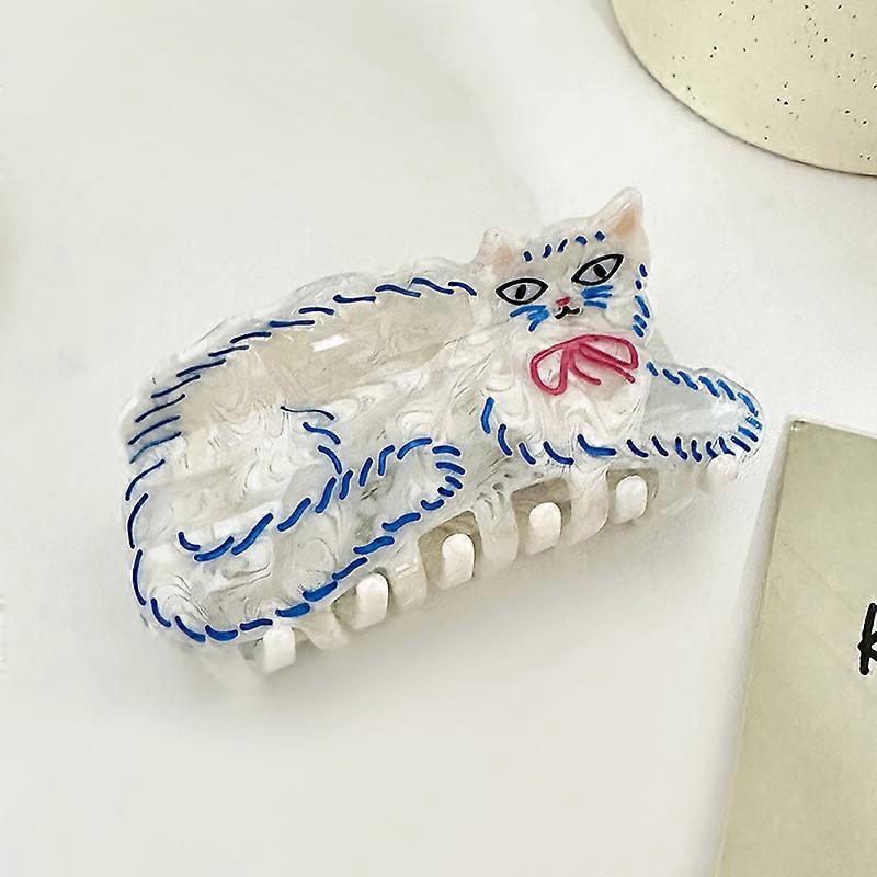 Creative White Persian Cat Hair Clip Cute Blue Curly Cat Crab Hair Clip Shark Clip for Girl Creative Hair Accessories for Women