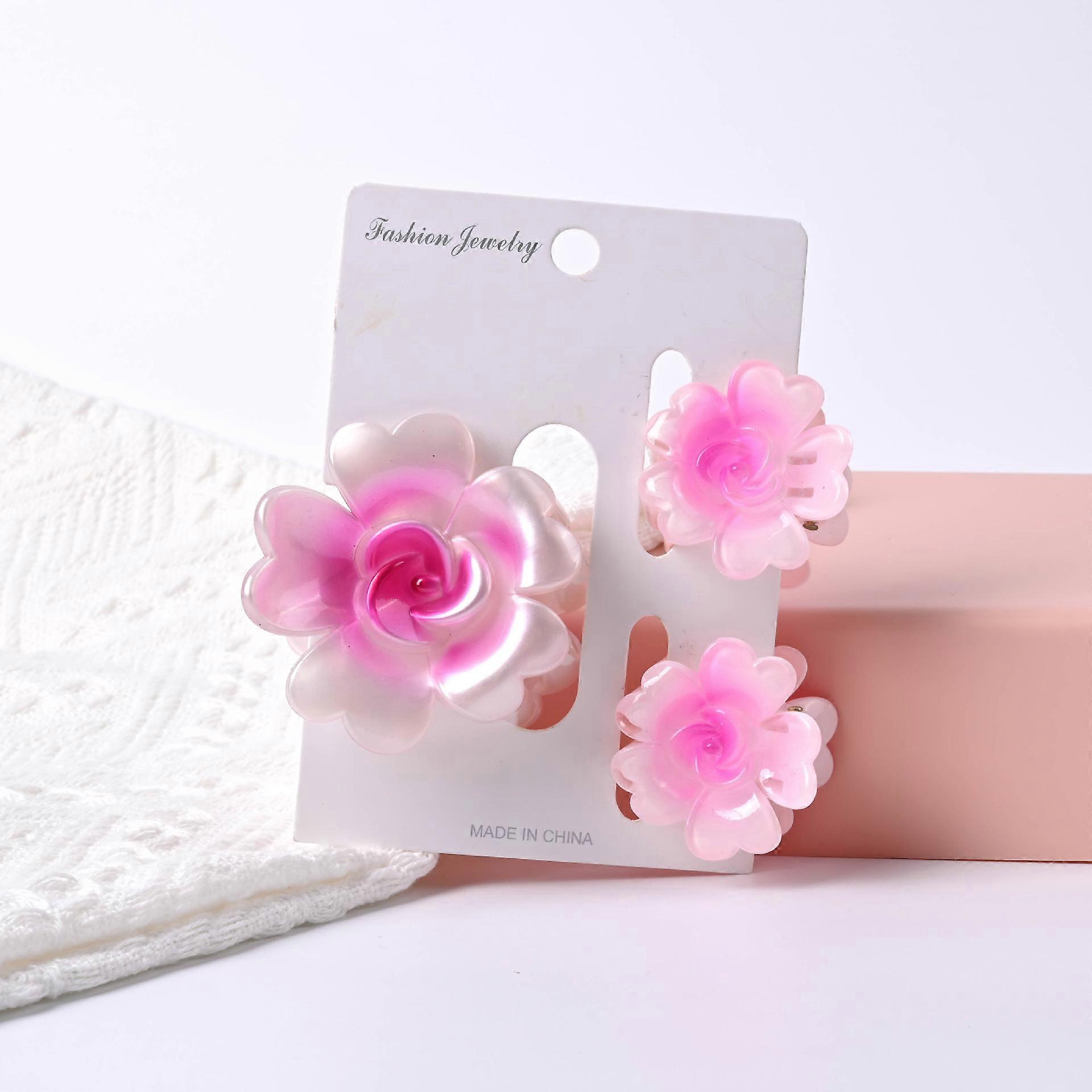 3Pcs/set Egg Flower Hair Clips Gradient Candy Color Rose Flowers for Daily Use Backcombed Ponytail Shark Clip Hair Accessories