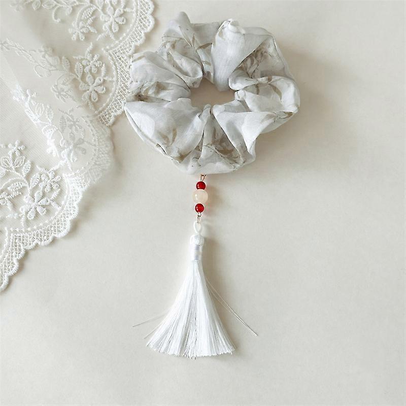 New Chinese Style Ink Wash Floral Large Intestine Headband for Women Simple Tassel Rubber Band Headband Fabric Headband
