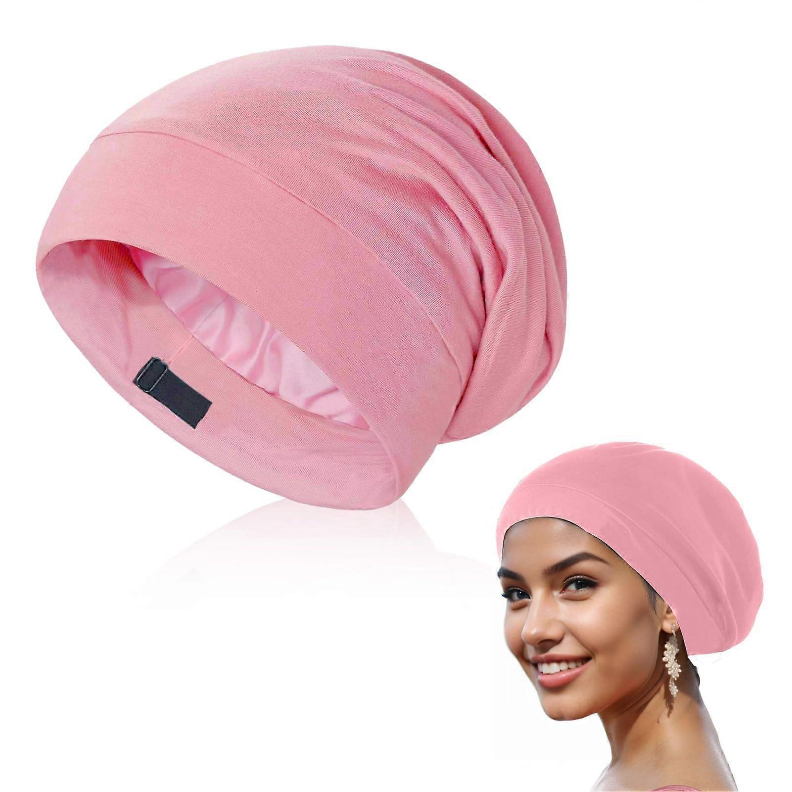 Mulberry Silk Hair Bonnet for Sleeping, Adjustable Strap, Frizz Control, Curly Hair Protection, Pink
