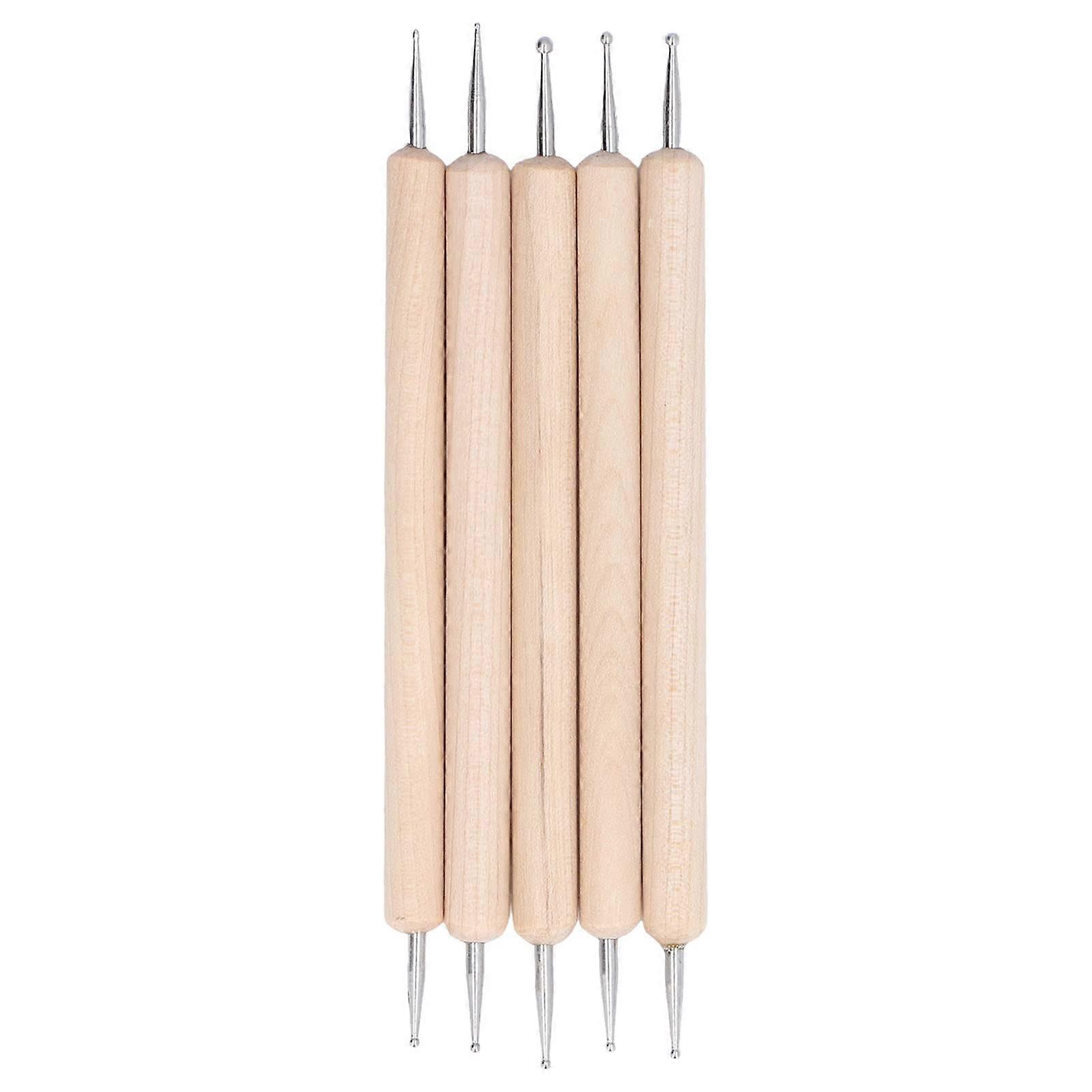 Double Ended Dotting Stylus Set with Precision Stainless Steel Tips and Ergonomic Wood Handles 5pcs