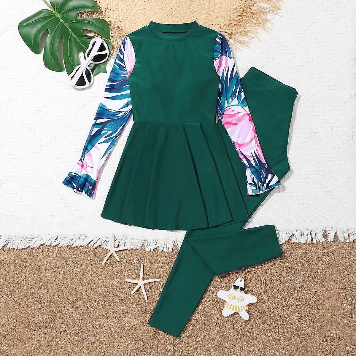 Girl Burkini Swimsuits Modest Muslim Islamic Long Sleeve Swimwear Kids Full Cover Top Skirted Children's Bathing Suit Pants