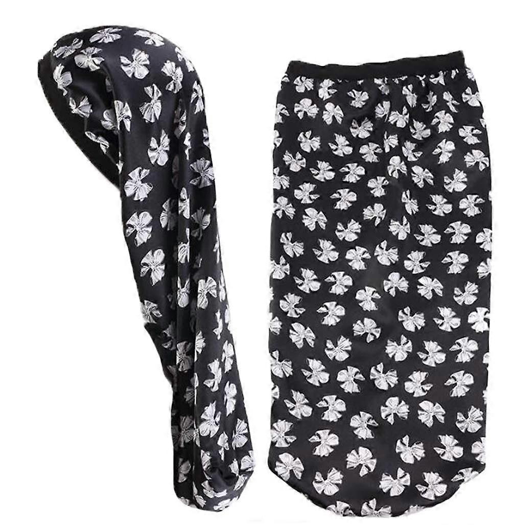 Long Hair Satin Sleep Cap in Black Key benefits Protects hairstyles overnight and during daily routines by reducing friction and preventing frizz. Smooth, silky surface preserves curls, braids, and long extensions so you wake up with less tangling and unchanged shape. Comfortable for extended wear thanks to a satin material that feels like real silk and sits lightly on the head. Features and material Material: Silky satin with a smooth, glossy finish that feels like silk and is comfortable to wear. Color: Black produced with ecodyeing and treated with antistatic processing to help reduce flyaways. Size: Length 62 cm (24.4 inches), Width 26 cm (10.2 inches). Roomy dimensions designed for long hair and larger styles. Compatibility and performance Suitable for long hair, braids, curly hair, frizzy hair, and users with long extensions. Maintains hairstyle shape while protecting hair from moisture loss and bed friction. Antistatic processing helps minimize static and flyaways during wear. Practical use scenarios Nighttime: Wear while sleeping to preserve curls, braids, or styled looks so you spend less time refreshing hair in the morning. Skincare and makeup: Keep hair securely covered while washing your face, applying makeup, or doing a facial routine without disturbing your style. Daily chores and bathing: Use during bathing or housework to protect hair from humidity and friction while you move through tasks. Why choose this sleep cap Combines a silklike feel with antistatic treatment for comfortable, effective hair protection. Generous dimensions accommodate a wide range of long hairstyles and extensions. Simple, versatile design works at night and during everyday routines to help maintain your look.