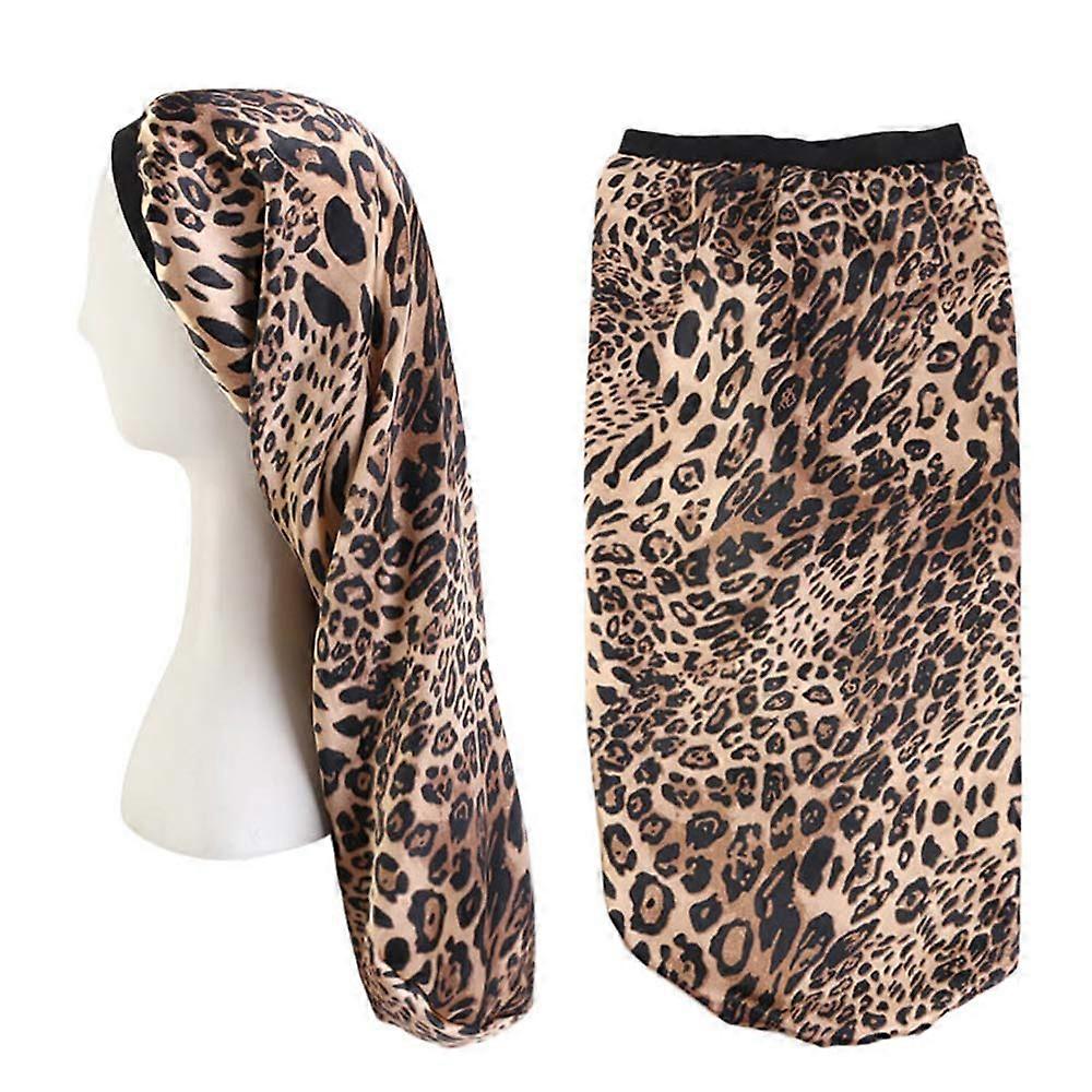 Satin Sleep Cap for Women Leopard Print Silk Hair Bonnet with Wide Elastic Band Hairstyle Protection