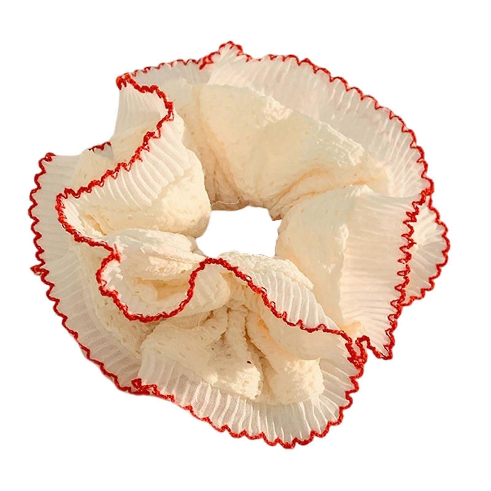 Elegant Red Lace Hair Scrunchie Double Layer Elastic Hair Tie for Women Formal and Casual Wear