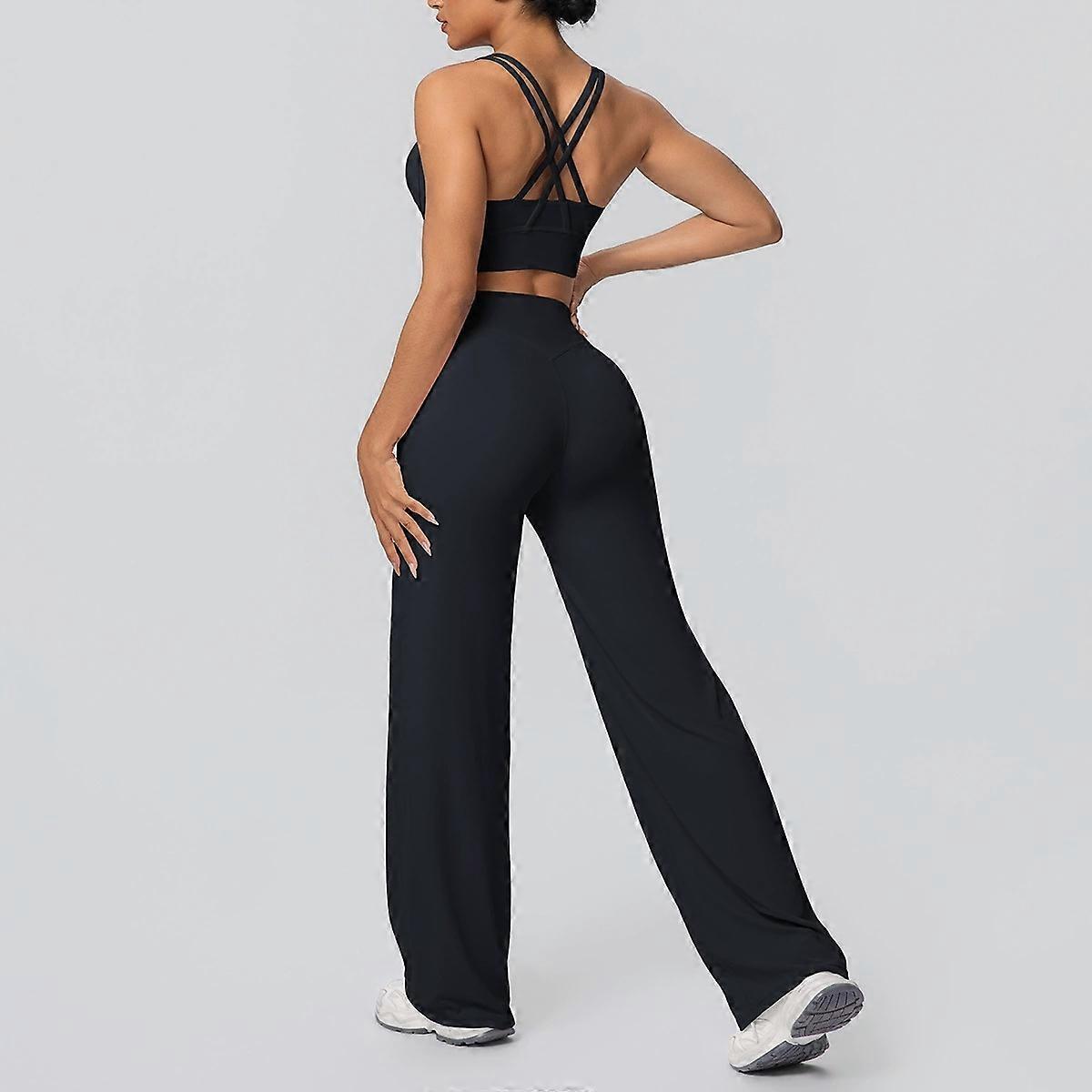 Yoga Set Cross Shoulder Strap Bra Bras Pants Gathering Gym Yoga Vest Beautiful Back High Waist Pants Training Fitness Bra Sets