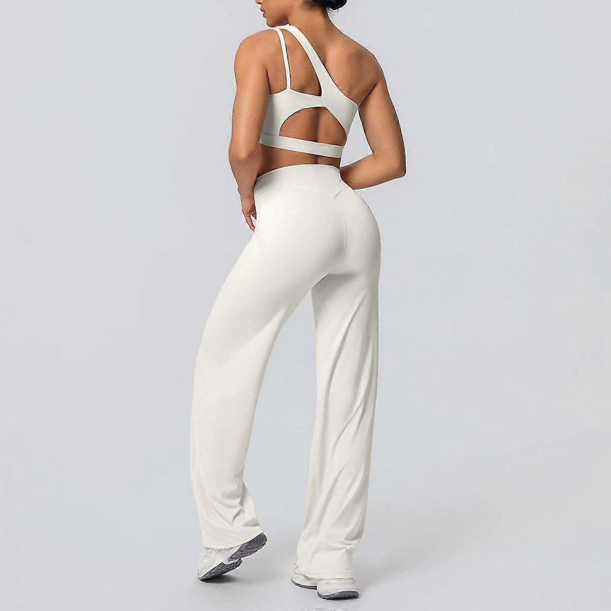 2PCS Yoga Set One-shoulder Bra Beautiful Back High Waist Pants Bras Suit Pilates Gathering Yoga Vest Training Fitness Bra Sets
