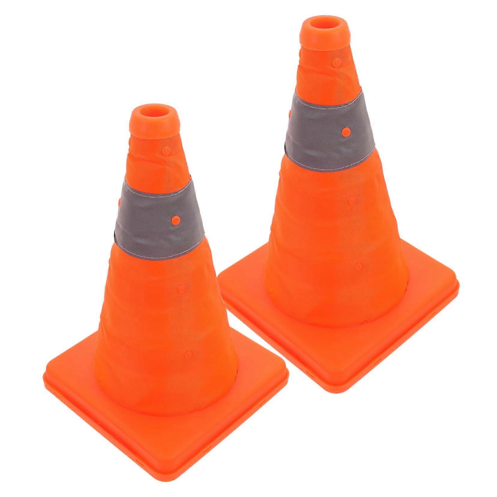 2Pcs Collapsible Traffic Cones with Reflective Safety Strips and Stable Base for Roadside Emergency