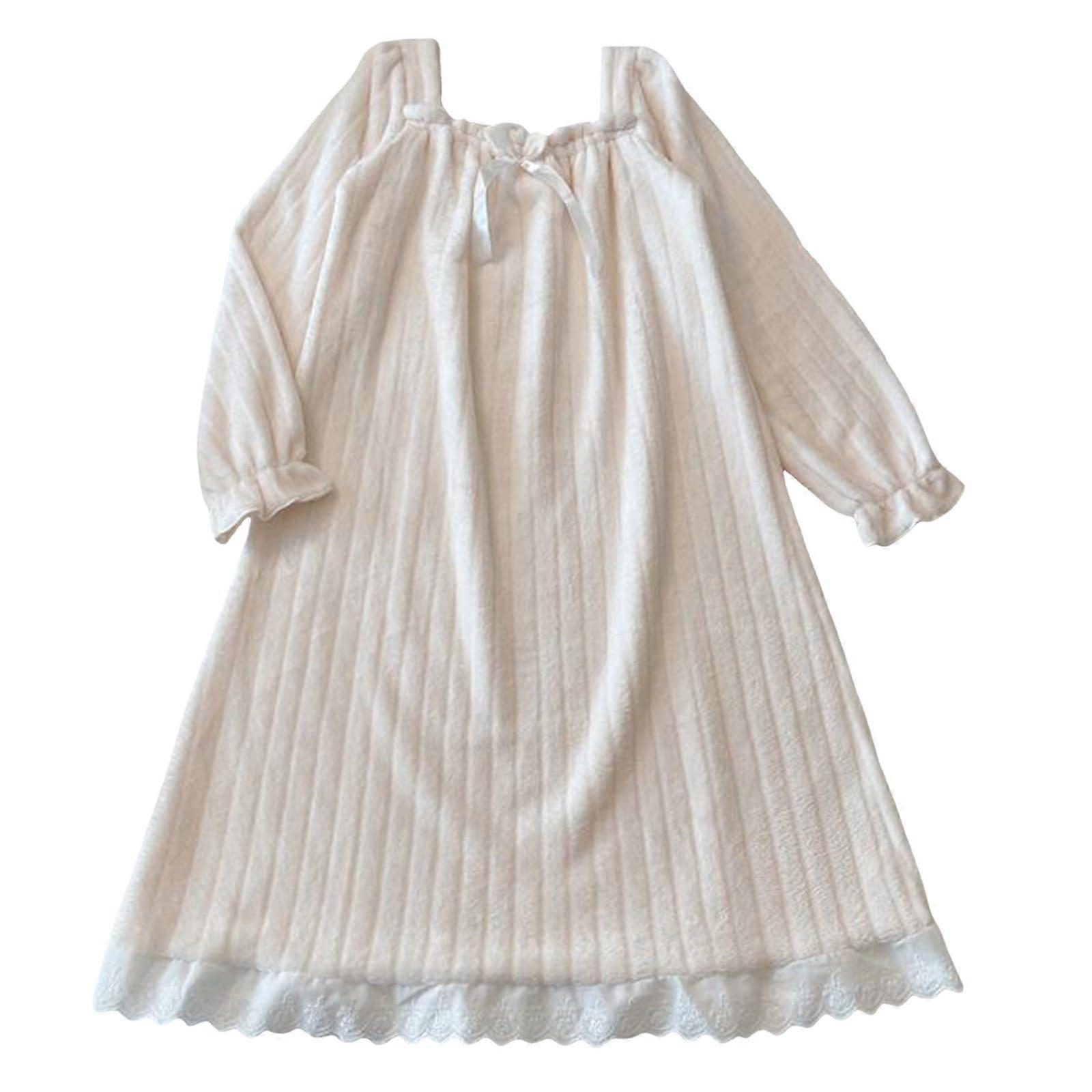 Christmas Nightgown Women Winter Pajamas Set Warm Thermal Soft Loungewear Sleepwear White L